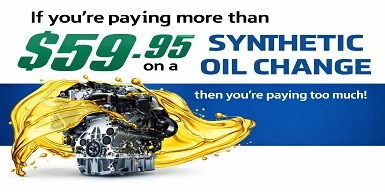 Only $59.95 for a synthetic oil change! If you're paying more, you're paying too much!